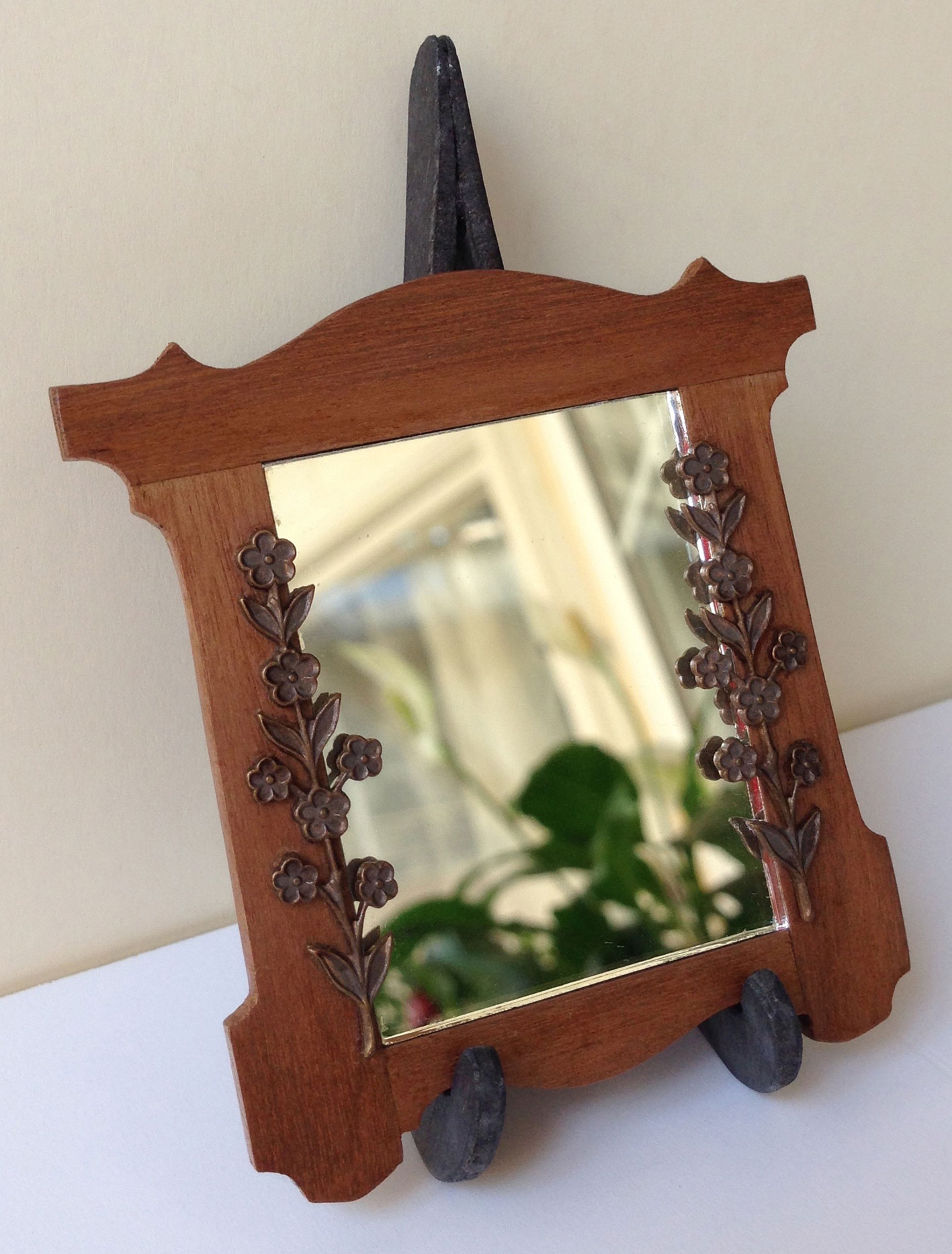 Espejo con marco de nogal y aplicaciones de latón