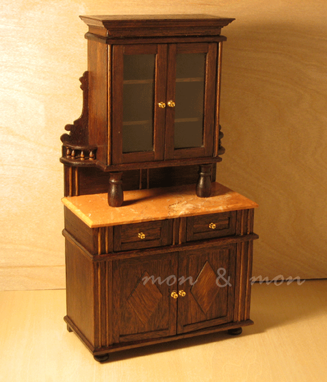 Materiales: Madera de nogal y encimera de mármol rosa