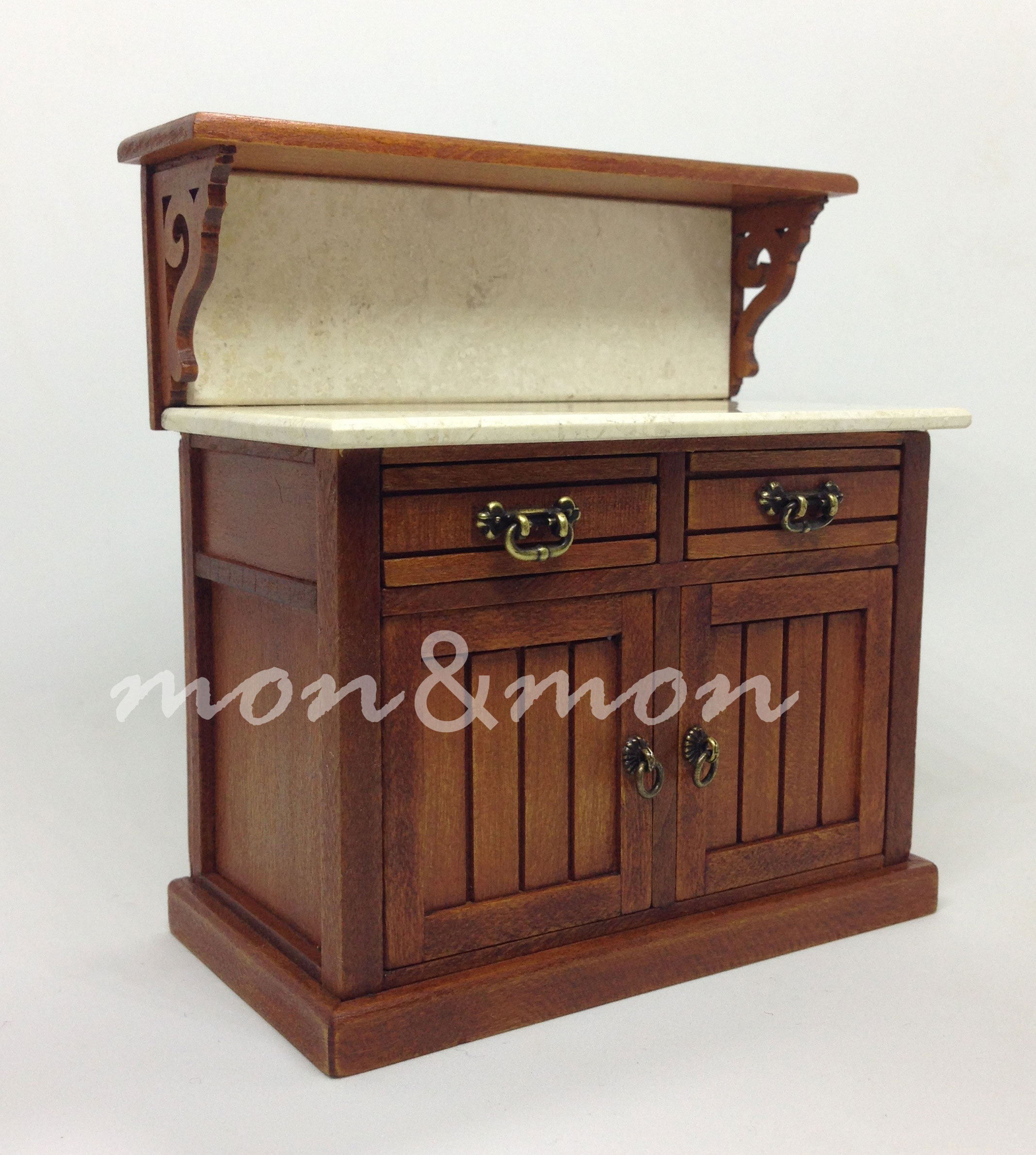 Mueble lavatorio antiguo con encimera de mármol blanco