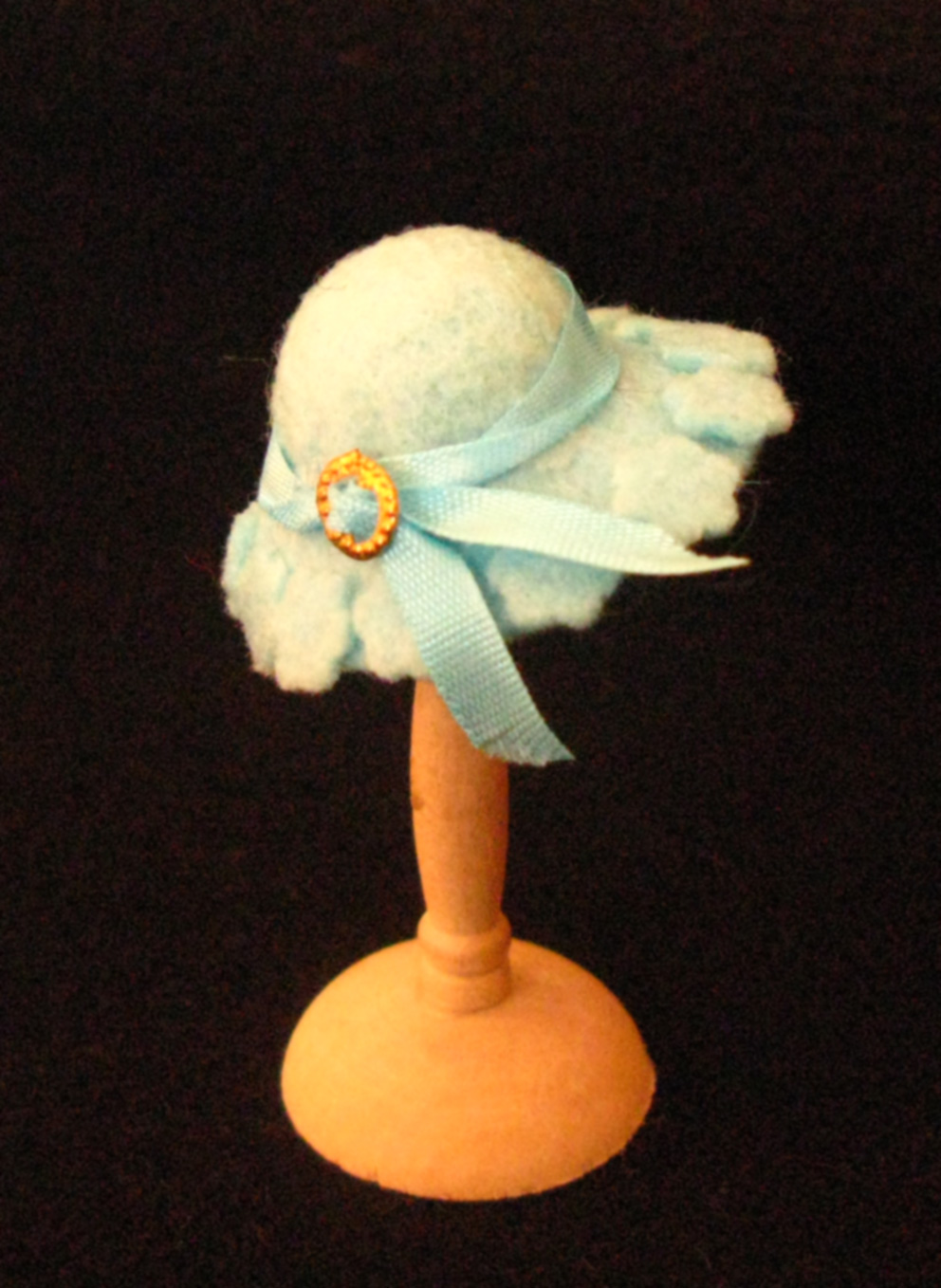 Sombrero de fieltro azul cielo con adornos de flores azules