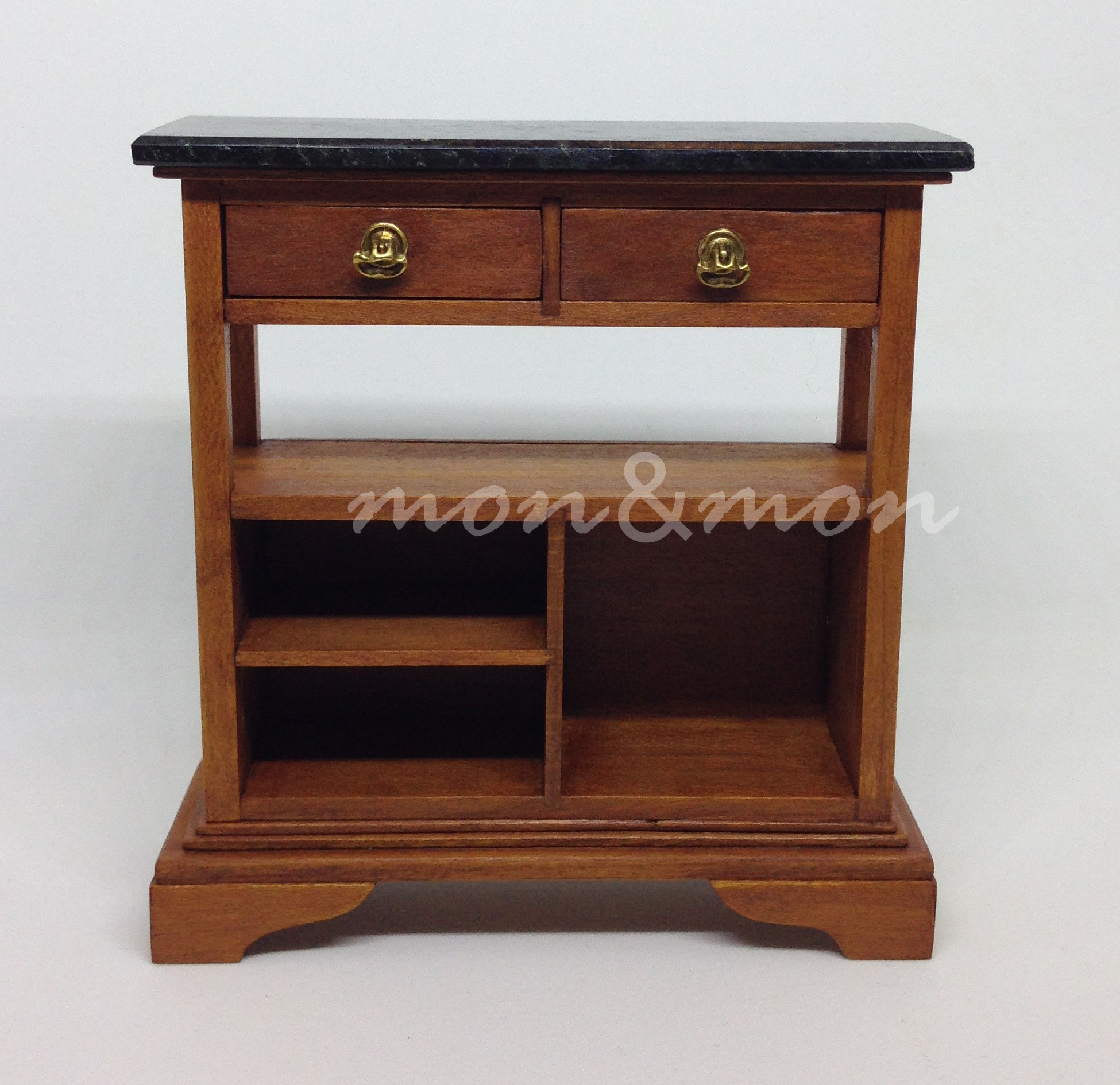 Librería baja en madera de cerezo y mármol negro