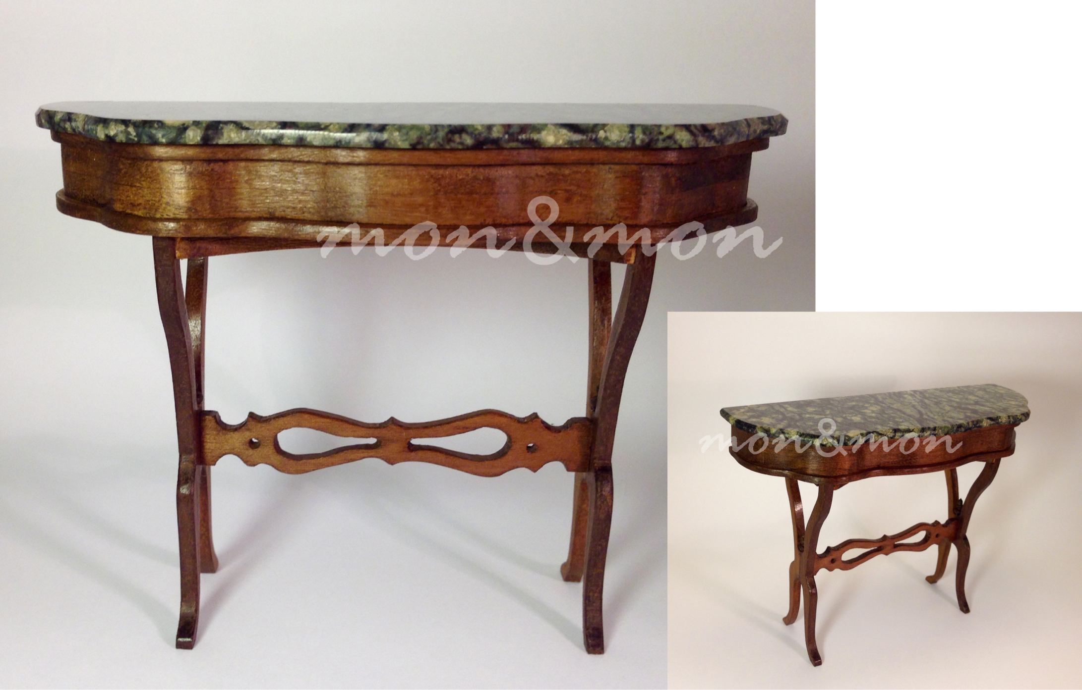 Materiales: madera de nogal con encimera de mármol jaspeado verde y negro